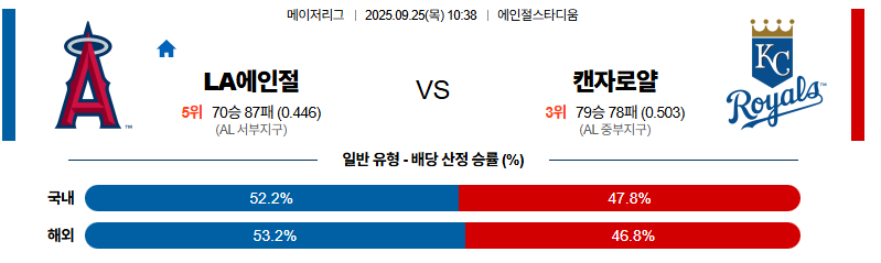 LA에인절스 대 캔자스시티 MLB 09월25일 맞대결 생중계, 스포츠중계, 스포츠분석