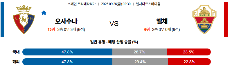 오사수나 대 엘체 라리가 09월26일 맞대결 생중계, 스포츠중계, 스포츠분석