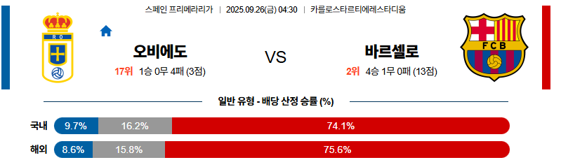 오비에도 대 바르셀로나 라리가 09월26일 맞대결 생중계, 스포츠중계, 스포츠분석
