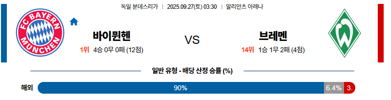 바이에른뮌헨 대 브레멘 분데스리가 09월27일 맞대결 생중계, 스포츠중계, 스포츠분석