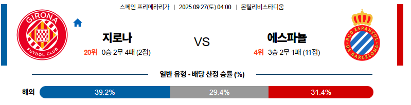 지로나 대 에스파뇰 라리가 09월27일 맞대결 생중계, 스포츠중계, 스포츠분석