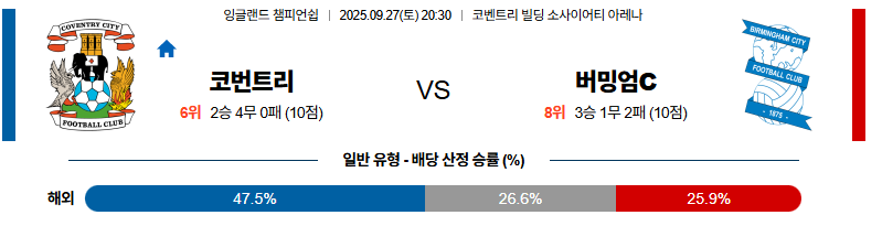 코번트리 대 버밍엄시티 잉글랜드챔피언쉽 09월27일 맞대결 생중계, 스포츠중계, 스포츠분석