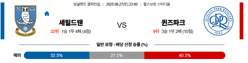 셰필드웬즈데이 대 QPR 잉글랜드챔피언쉽 09월27일 맞대결 생중계, 스포츠중계, 스포츠분석