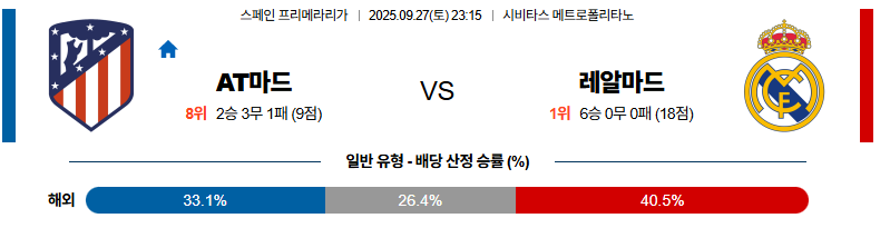 AT마드리드 대 레알마드리드 라리가 09월27일 맞대결 생중계, 스포츠중계, 스포츠분석