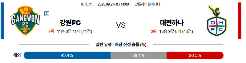 강원 대 대전 K리그1 09월27일 맞대결 생중계, 스포츠중계, 스포츠분석