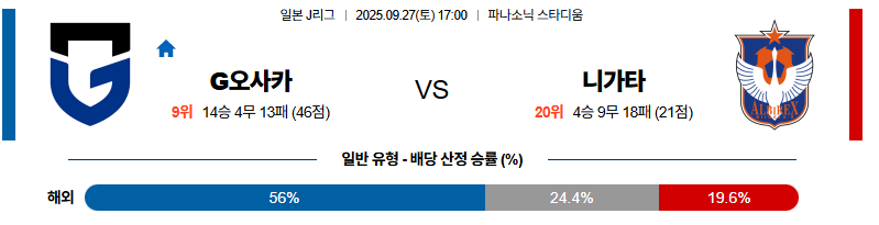 감바오사카 대 알비렉스니가타 J리그1 09월27일 맞대결 생중계, 스포츠중계, 스포츠분석