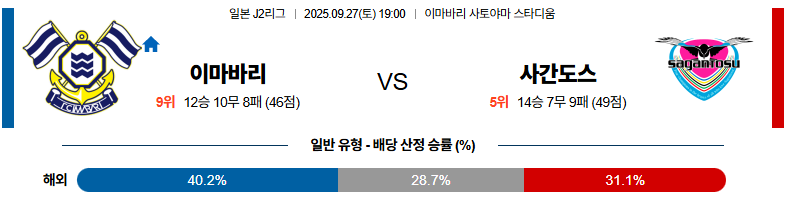 이마바리 대 사간도스 J리그2 09월27일 맞대결 생중계, 스포츠중계, 스포츠분석