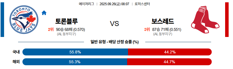 토론토 대 보스턴 MLB 09월26일 맞대결 생중계, 스포츠중계, 스포츠분석