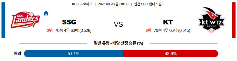 SSG 대 KT KBO 09월26일 맞대결 생중계, 스포츠중계, 스포츠분석