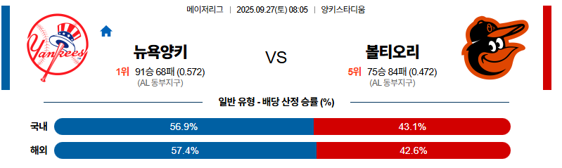 뉴욕양키스 대 볼티모어 MLB 09월27일 맞대결 생중계, 스포츠중계, 스포츠분석