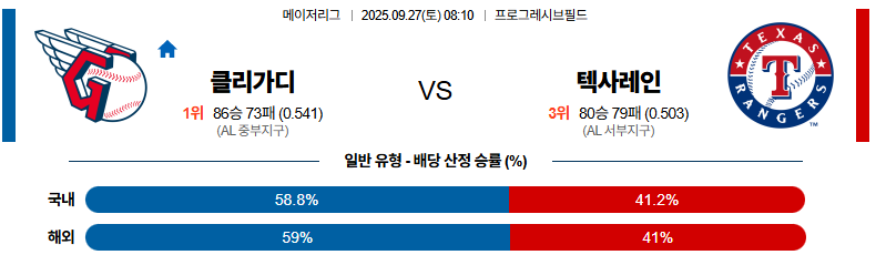 클리블랜드 대 텍사스 MLB 09월27일 맞대결 생중계, 스포츠중계, 스포츠분석