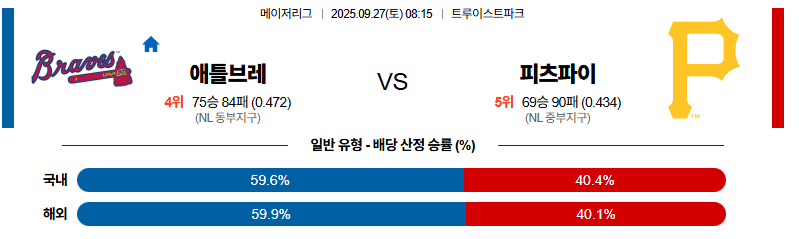 애틀랜타 대 피츠버그 MLB 09월27일 맞대결 생중계, 스포츠중계, 스포츠분석