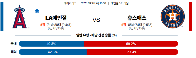 LA에인절스 대 휴스턴 MLB 09월27일 맞대결 생중계, 스포츠중계, 스포츠분석