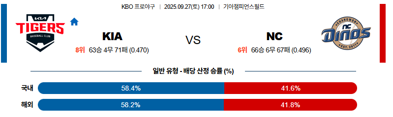 KIA 대 NC KBO 09월27일 맞대결 생중계, 스포츠중계, 스포츠분석