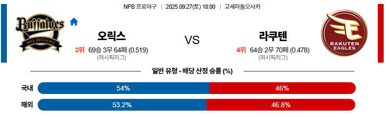 오릭스 대 라쿠텐 NPB 09월27일 맞대결 생중계, 스포츠중계, 스포츠분석