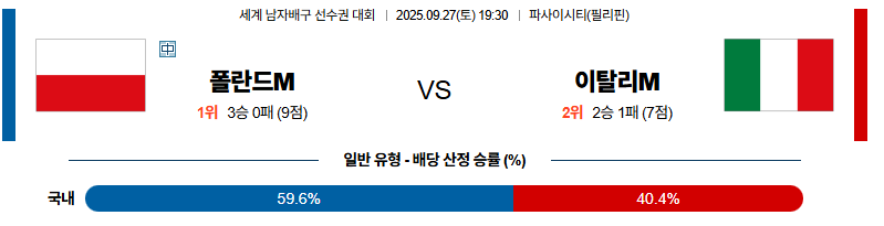 폴란드 대 이탈리아 세계남자배구선수권대회 09월27일 맞대결 생중계, 스포츠중계, 스포츠분석