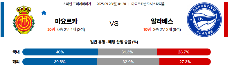마요르카 대 알라베스 라리가 09월28일 맞대결 생중계, 스포츠중계, 스포츠분석