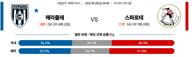 헤라클레스 대 스파르타로테르담 에레디비지 09월28일 맞대결 생중계, 스포츠중계, 스포츠분석