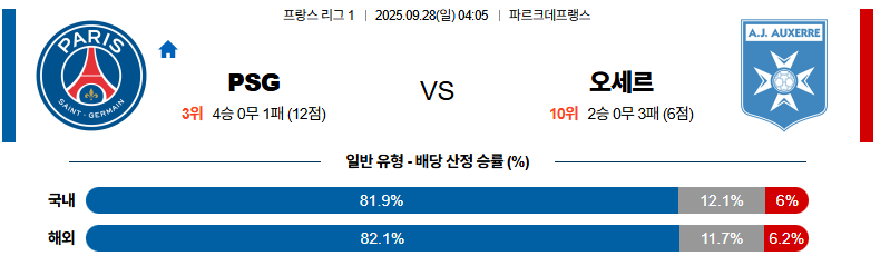 파리생제르망의 전술적 완성도와 선수 개개인의 기량이 오세르보다 확실히 앞서고 있어, PSG의 승리를 예상합니다.