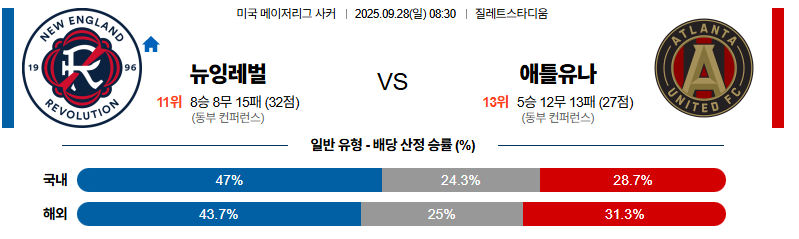 뉴잉글랜드 대 애틀랜타 메이저리그사커 09월28일 맞대결 생중계, 스포츠중계, 스포츠분석