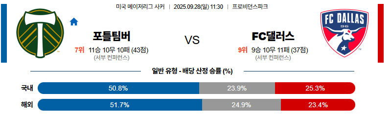 포틀랜드 대 댈러스 메이저리그사커 09월28일 맞대결 생중계, 스포츠중계, 스포츠분석