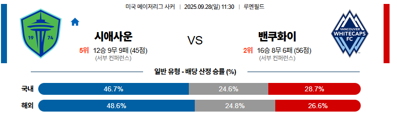 시애틀 대 벤쿠버 메이저리그사커 09월28일 맞대결 생중계, 스포츠중계, 스포츠분석