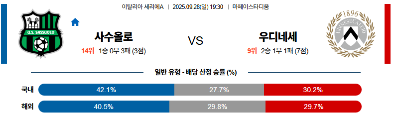 이번 경기는 수비 불안이 여전한 사수올로보다 우디네세가 확실히 유리한 흐름을 가져갈 가능성이 큽니다.