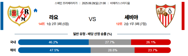 라요 대 세비야 라리가 09월28일 맞대결 생중계, 스포츠중계, 스포츠분석