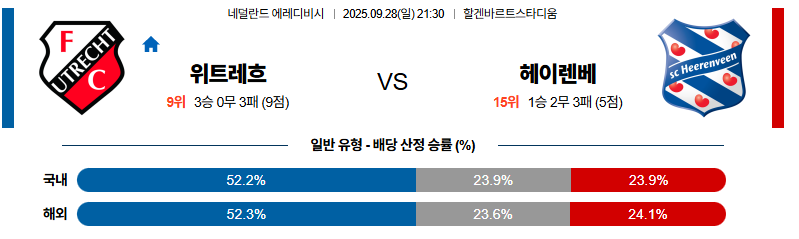 위트레흐트 대 헤렌벤 에레디비지 09월28일 맞대결 생중계, 스포츠중계, 스포츠분석