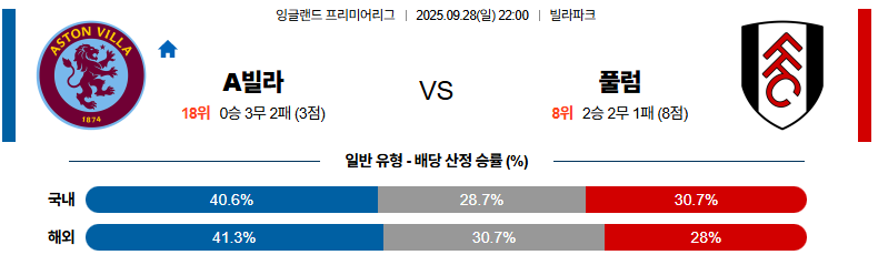 애스턴빌라 대 풀럼 잉글랜드EFL컵 09월28일 맞대결 생중계, 스포츠중계, 스포츠분석