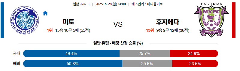 미토홀릭 대 후지에다 J리그2 09월28일 맞대결 생중계, 스포츠중계, 스포츠분석