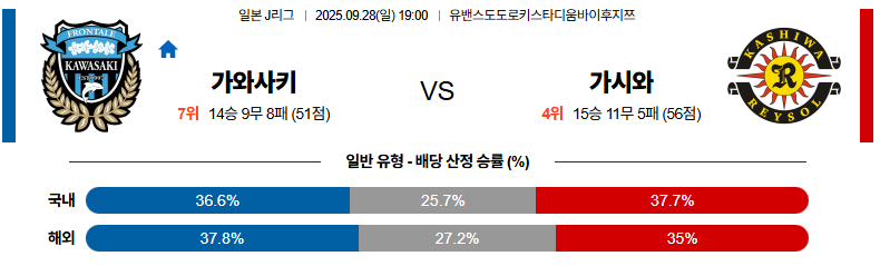가와사키 대 가시와레이솔 J리그1 09월28일 맞대결 생중계, 스포츠중계, 스포츠분석