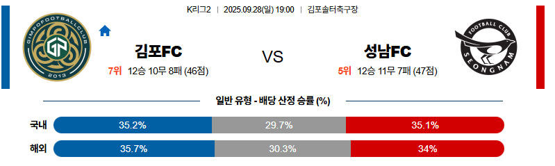 김포 대 성남 K리그2 09월28일 맞대결 생중계, 스포츠중계, 스포츠분석