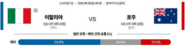 이탈리아 대 호주 U20월드컵 09월29일 맞대결 생중계, 스포츠중계, 스포츠분석