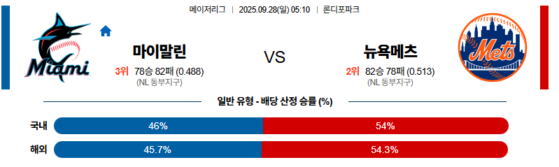 마이애미 대 뉴욕메츠 MLB 09월28일 맞대결 생중계, 스포츠중계, 스포츠분석
