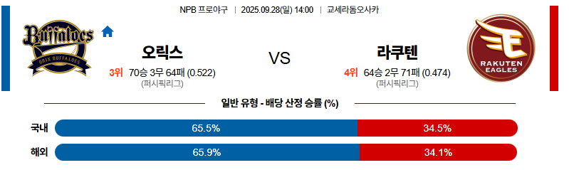 오릭스 대 라쿠텐 NPB 09월28일 맞대결 생중계, 스포츠중계, 스포츠분석