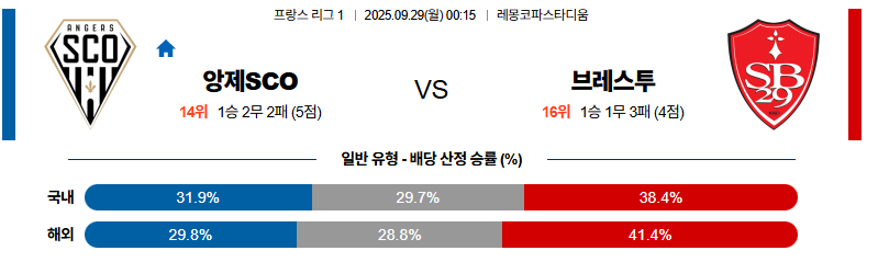 앙제 대 브레스트 리그앙 09월29일 맞대결 생중계, 스포츠중계, 스포츠분석