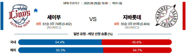 세이부 대 지바롯데 NPB 09월29일 맞대결 생중계, 스포츠중계, 스포츠분석