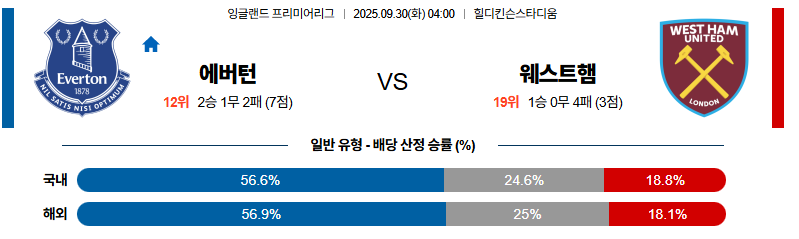 이번 경기는 전술적 안정감과 공격 루트의 다양성에서 에버튼이 훨씬 유리할 것으로 예상됩니다. 웨스트햄이 보웬과 파케타를 활용해 순간적인 찬스를 만들 수는 있겠지만, 수비 붕괴라는 본질적인 약점을 가리기에는 역부족입니다. 따라서 에버튼이 주도권을 가져갈 가능성이 매우 높습니다.