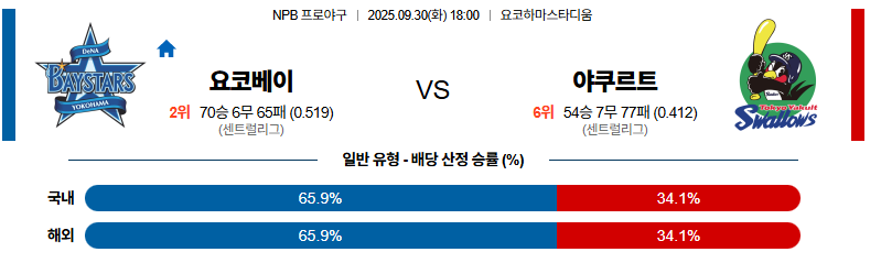 요코하마 대 야쿠르트 NPB 09월30일 맞대결 생중계, 스포츠중계, 스포츠분석