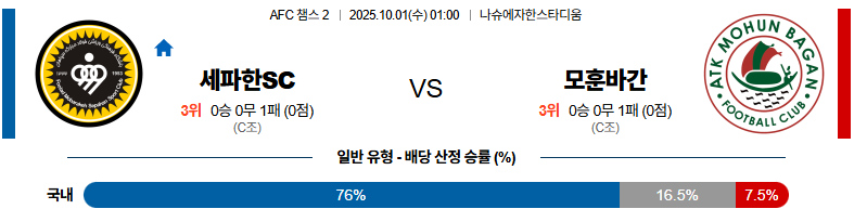 세파한 대 모훈바간 AFC챔피언스리그2 10월01일 맞대결 생중계, 스포츠중계, 스포츠분석