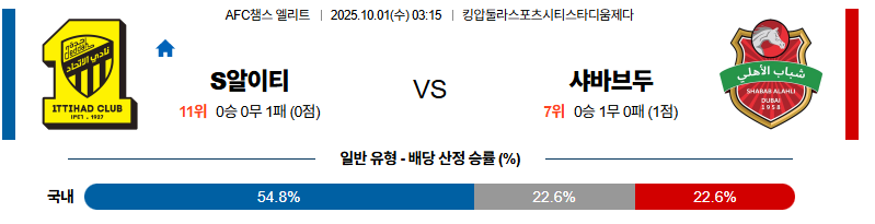 알이티하드 대 알아흘리 AFC챔피언스리그 10월01일 맞대결 생중계, 스포츠중계, 스포츠분석