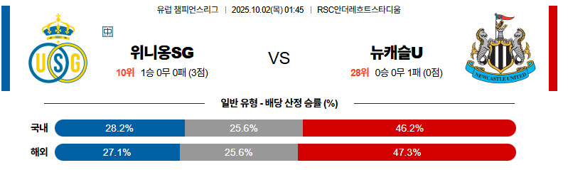 위니옹 대 뉴캐슬 UEFA챔피언스리그 10월02일 맞대결 생중계, 스포츠중계, 스포츠분석
