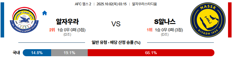 알자우라 대 알나스르 AFC챔피언스리그2 10월02일 맞대결 생중계, 스포츠중계, 스포츠분석