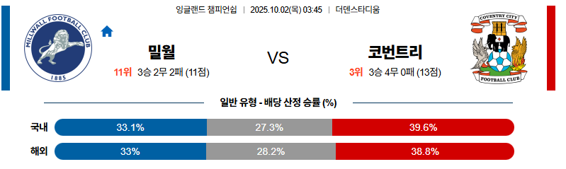밀월 대 코번트리 잉글랜드챔피언쉽 10월02일 맞대결 생중계, 스포츠중계, 스포츠분석