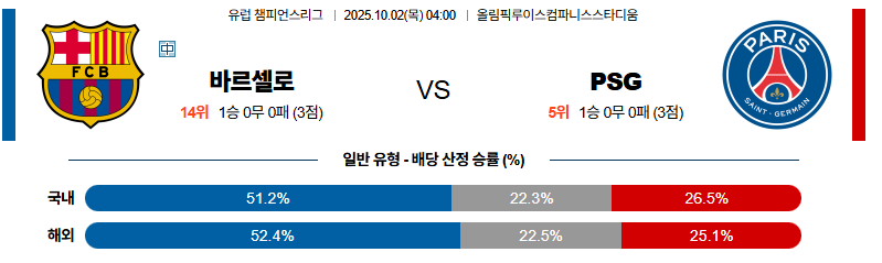 바르셀로나 대 파리생제르망 UEFA챔피언스리그 10월02일 맞대결 생중계, 스포츠중계, 스포츠분석