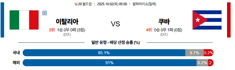 이탈리아 대 쿠바 U20월드컵 10월02일 맞대결 생중계, 스포츠중계, 스포츠분석