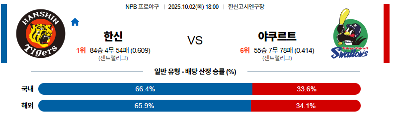 한신 대 야쿠르트 NPB 10월02일 맞대결 생중계, 스포츠중계, 스포츠분석