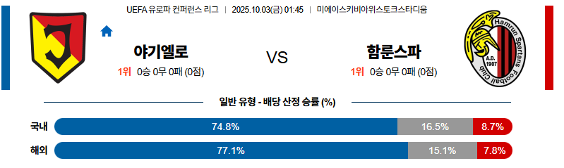 야기엘로니아 대 함룬 UEFA유로파컨퍼런스리 10월03일 맞대결 생중계, 스포츠중계, 스포츠분석