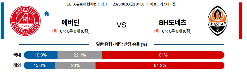 에버딘 대 샤흐타르 UEFA유로파컨퍼런스리 10월03일 맞대결 생중계, 스포츠중계, 스포츠분석